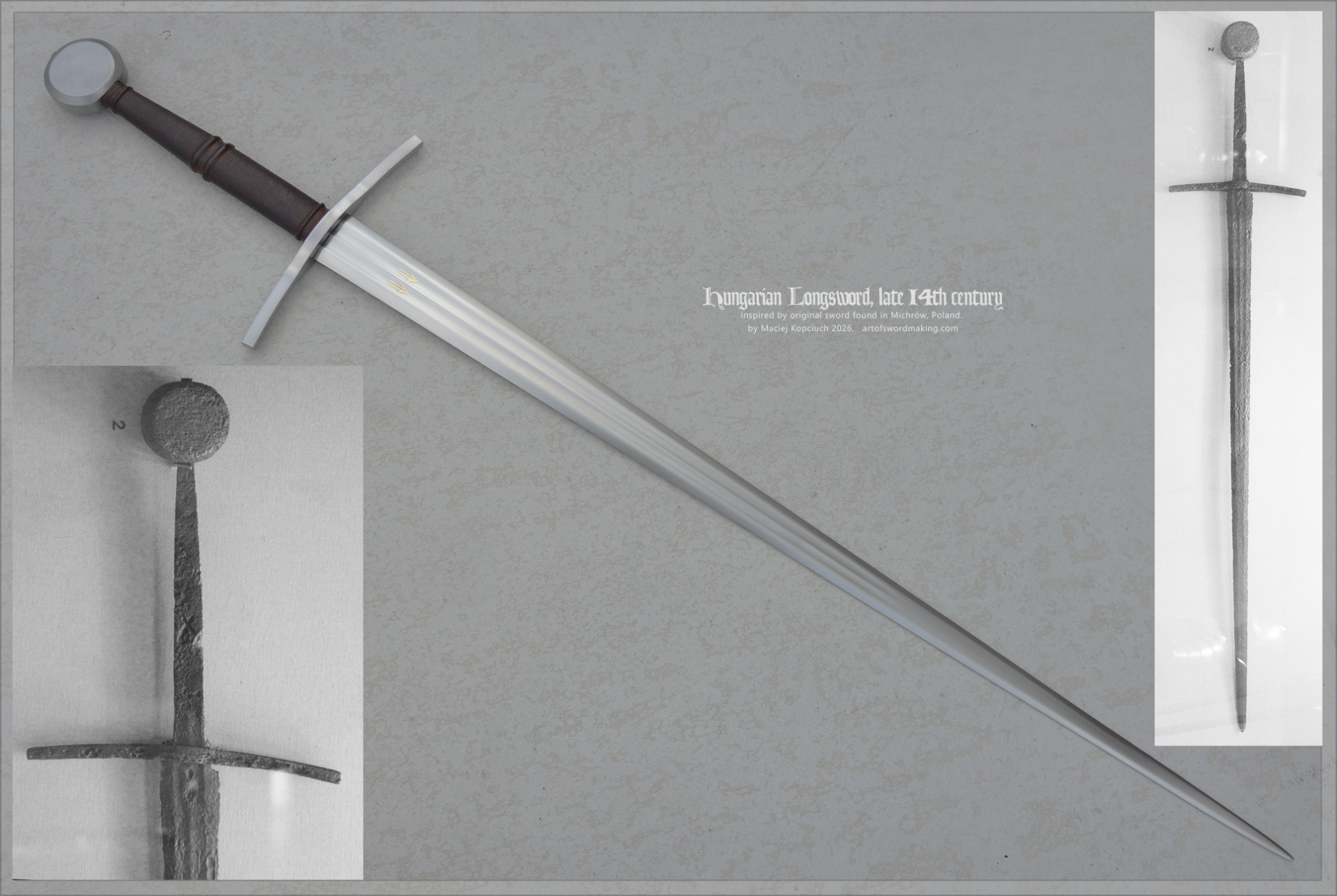 This magnificent sword was recovered by peasants from the Jeziorka River near the village of Michrów near Grójec (Warsaw County) in 1905. It was donated to the museum in 1906 and subsequently mentioned numerous times in scholarly publications. The original is generally attributed to Hungarian workshops, hence the name I adopted.