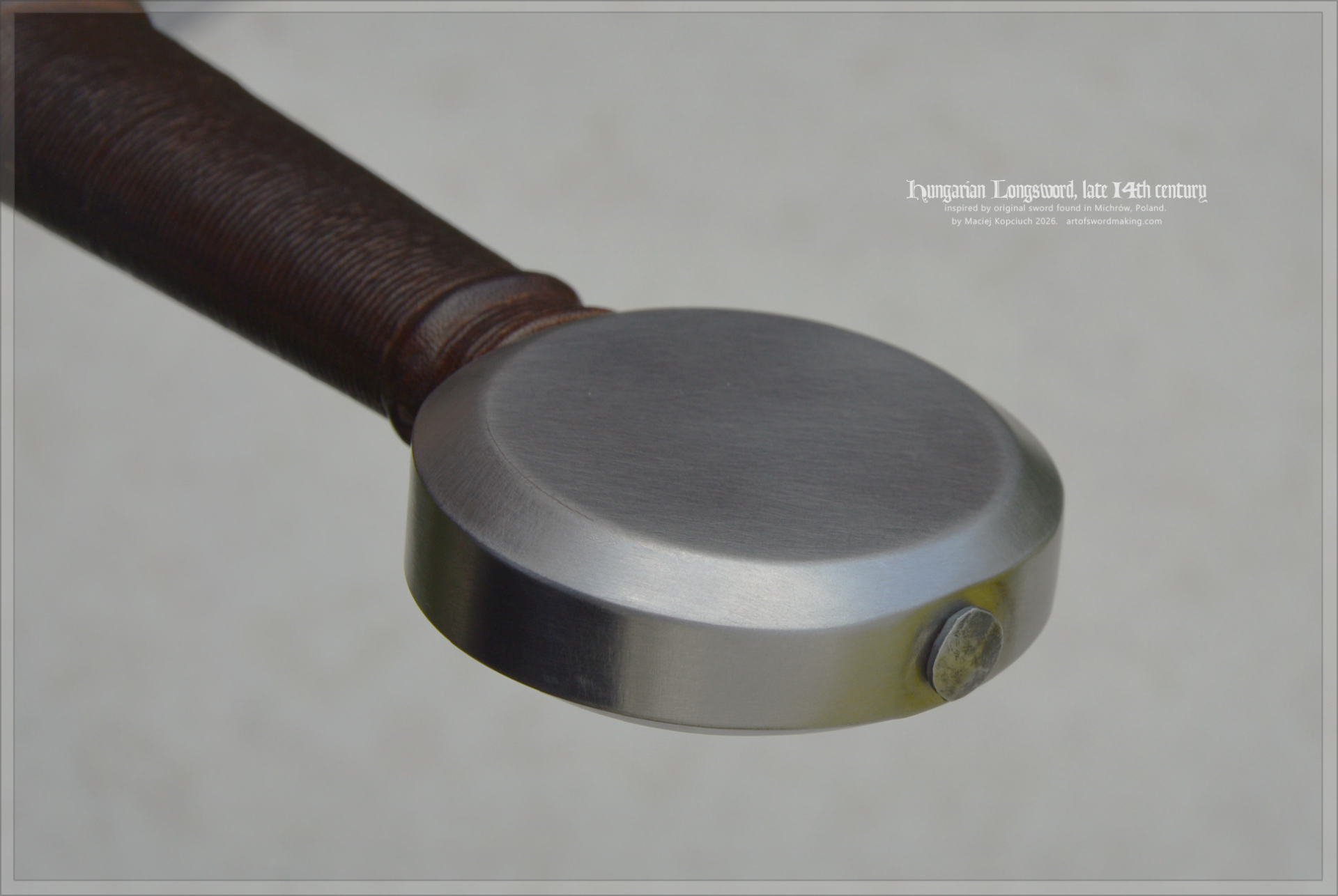 The original sword has no grip, so I decided to give it a simple, classic oval-shaped handle, typical of the period, with double risers in the center to separate the hands. It's best handled with one hand on the cross-guard and the other resting on the pommel. Thanks to this, we have a full range of techniques available, and we gain dynamic maneuvers. The handle fits the type of sword perfectly and is very comfortable.
