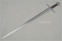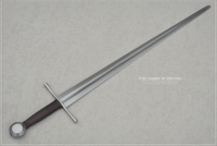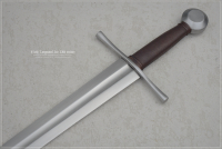 A very light sword in the Early Longsword style, with an extended handle for an additional 2-3 fingers of the other hand. This sword is agile and versatile, and can be also used with one hand. This is an early version of this type of sword, which began to be made in the second half of the 13th century and developed into the classic longsword in the 14th century. Crossguard round in cross-section, straight, flared ends. One of the recognizable and classic types.